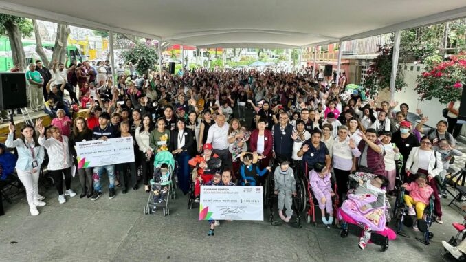 Con el objetivo de reconocer, apoyar y empoderar a personas que dedican su tiempo y esfuerzo al cuidado de otros, se llevó a cabo la entrega de becas “Cuidando Contigo, Rosario Castellanos”, en la colonia Jorge Jiménez Cantú, con este recurso podrán cubrir gastos relacionados a esta actividad como materiales, terapias o sus necesidades personales.