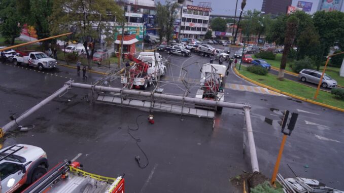 1. La fuerte lluvia que se presentó esta tarde provocó la caída de un espectacular a la altura de la glorieta de Sor Juana Inés de la Cruz en la colonia Benito Juárez.