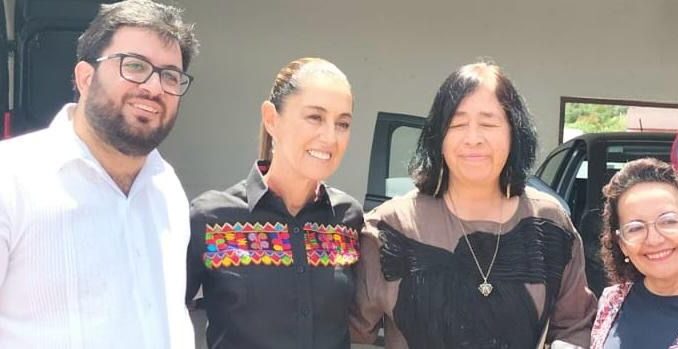 La Presidenta Claudia Sheinbaum, culminó el recorrido junto con autoridades de la Universidad Rosario Castellanos, al grito de “Libres, Dignos y Humanos, somos Rosario Castellanos”.