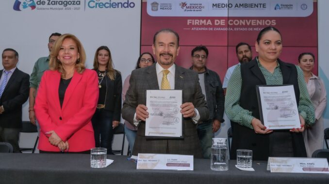 El Gobierno de Atizapán de Zaragoza, encabezado por el Presidente Municipal Pedro Rodríguez Villegas, quien estuvo acompañado por su esposa y Presidenta Honoraria del DIF, Patricia Arévalo Rubio, en colaboración con la Secretaría del Medio Ambiente y Desarrollo Sostenible del Estado de México, formalizaron una alianza histórica mediante la firma de convenios estratégicos que sientan las bases para un desarrollo más verde y saludable.
