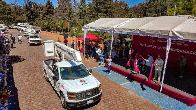 El alcalde Isaac Montoya Márquez, entregó la renovación de más de 298 vehículos de Servicios Públicos con nueva cromática y equipados con más de 750 neumáticos nuevos, en beneficio de las y los trabajadores que acuden en las unidades a realizar labores de recolección de desechos sólidos, podas, bacheo, cambio de luminarias y en general trabajos que contribuyen a mantener en buen estado las calles y espacios públicos dejando Huellas de la Transformación en las comunidades.